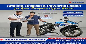 Established in 2019, SAPTAGIRI SUZUKI, Basaveshwara Nagar is one of the most well-known and trusted Suzuki Bike Showroom in Basaveshwarnagar. SAPTAGIRI SUZUKI is an authorised Suzuki Motorcycle Dealer with a state-of-the-art showroom where you can check out the new Avenis,take it out for a test ride, and book your dream ride. On our website, you can explore the entire range of two-wheelers by Suzuki Motorcycles. You can also find out the ex-showroom price of different variants, calculate EMI, get a callback, and even book a suitable time slot for a test ride. Check out your favourite Suzuki motorcycles and scooters conveniently, with the easy-to-use filters to simplify your search. SAPTAGIRI SUZUKI offers the entire range of Suzuki Motorcycles, Big Bikes, and Scooters in the Avenis from SAPTAGIRI SUZUKI,check out its features, take it for a ride, get a quote, and book your favourite bike from the entire range of Suzuki motorcycles and scooters in. At SAPTAGIRI SUZUKI, you can also avail two-wheeler finance to buy your favourite ride.